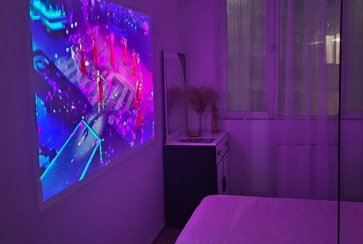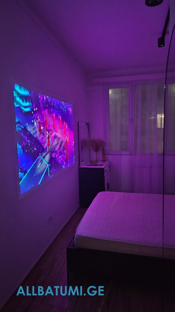 დამონტაჟებულია პროექტორი სახლის კინოთეატრისთვის, დიდი მაცივარი და ტევადი სარეცხი მანქანა.